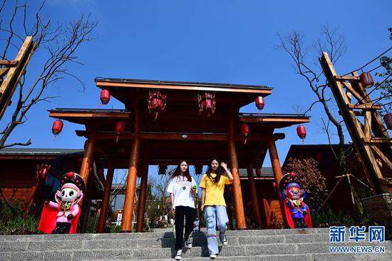 5月1日,游客在河南省鶴壁市淇濱區鉅橋鎮崗坡村渝派火鍋樂園里游玩。