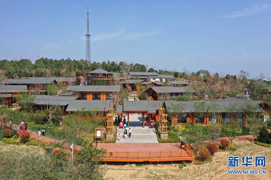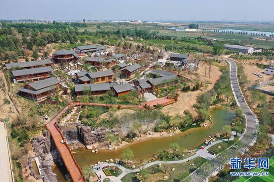 這是5月1日拍攝的河南省鶴壁市淇濱區鉅橋鎮崗坡村渝派火鍋樂園(無人機照片)。