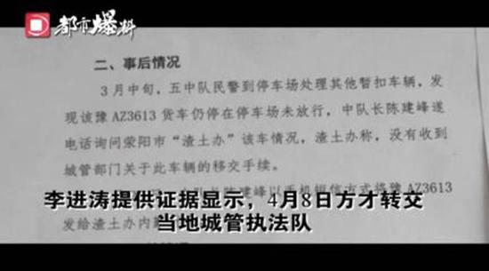 下午,經(jīng)過一個小時的等待,李先生接到一個自稱是,滎陽市公安局紀(jì)委紀(jì)檢組組長關(guān)警官的電話,稱調(diào)查的最新進(jìn)展已經(jīng)出來了:交警隊并沒有扣留這輛違法車輛,是執(zhí)法局把車扣走了。