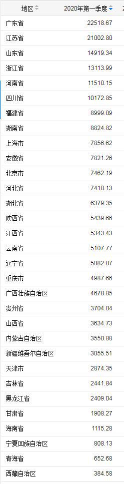 原標題:《31省份一季度GDP出爐 廣東江蘇總量位列前兩名》