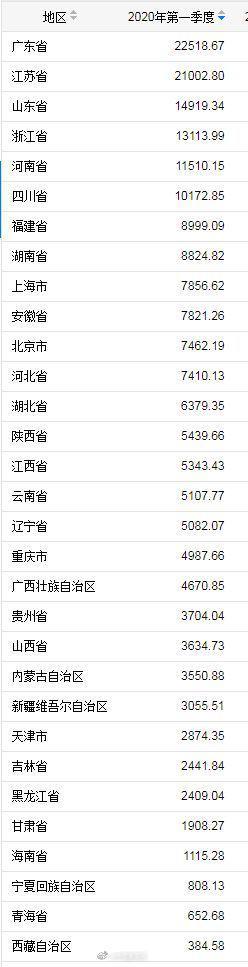 原標題:《31省份一季度GDP出爐:廣東江蘇位列前二名,河南排第五》