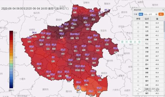 全省淮河以北都在35℃包圍圈內(nèi),北中部大部在40度左右,焦作更是以41.9℃奪得高溫冠軍