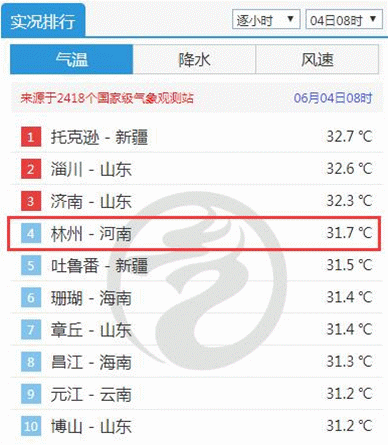 林州在全國(guó)高溫榜一枝獨(dú)秀