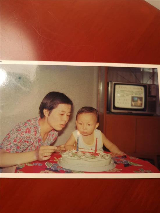 粉嘟嘟、胖乎乎的小男孩,穿件粉色短褲,面前放著蛋糕。這是姚策1歲時的生日照,蔣艷麗至今珍存著。