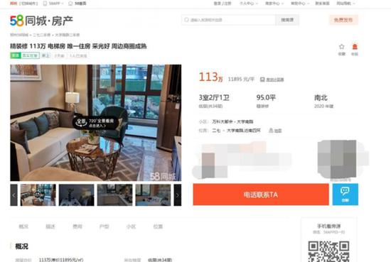 記者看到某中介在58同城上發布了一個萬科大都會95平米、3室2廳1衛、總價為113萬元的精裝修二手房,按照所謂的“實拍圖”蓋房子裝修很是不錯,性價比很高,但當記者聯系到發布該房源信息的經紀人表示想看房時,對方直接電話中告訴記者這個圖片不是真實的,便開始向記者推銷起了其他房源。