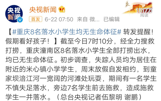 截止6月22日7時10分,經全力搜救打撈,潼南區8名落水學生全部打撈出水,均已無生命體征。