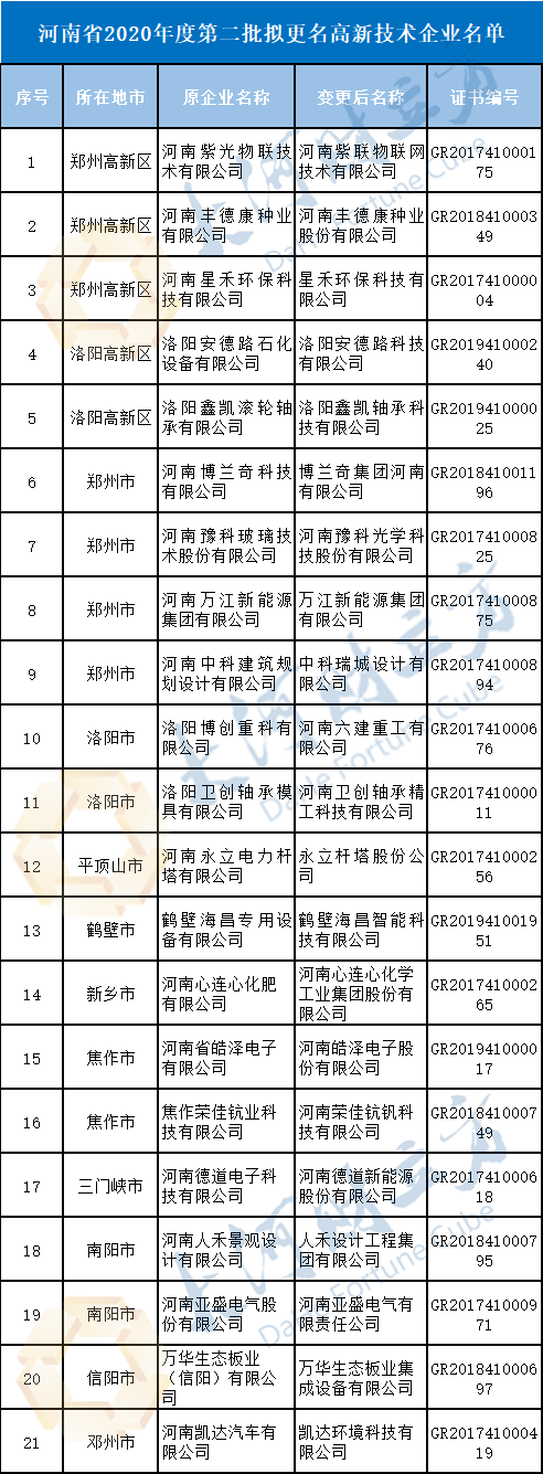原標題:《河南21家高新技術企業擬更名,另有2家將重大變化》