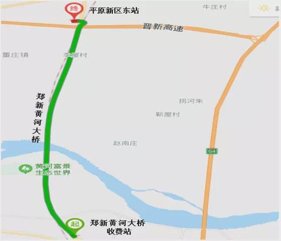 焦作至京港澳高速方向去往鄭州方向車友,請繞行晉新高速平原新區東站至鄭新黃河大橋站;焦作至京港澳高速方向去往北京方向車友,請繞行晉新高速平原新區東站至京港澳高速原陽站上站;晉新高速平原新區東站的車友,可以繞行鄭新黃河大橋、京港澳高速原陽站或晉新高速平原新區西站上站。