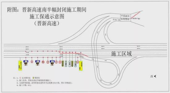 專業術語:晉新高速(K112+716-K118+716)南半幅西向東禁止車輛通行,北半幅正常通行。