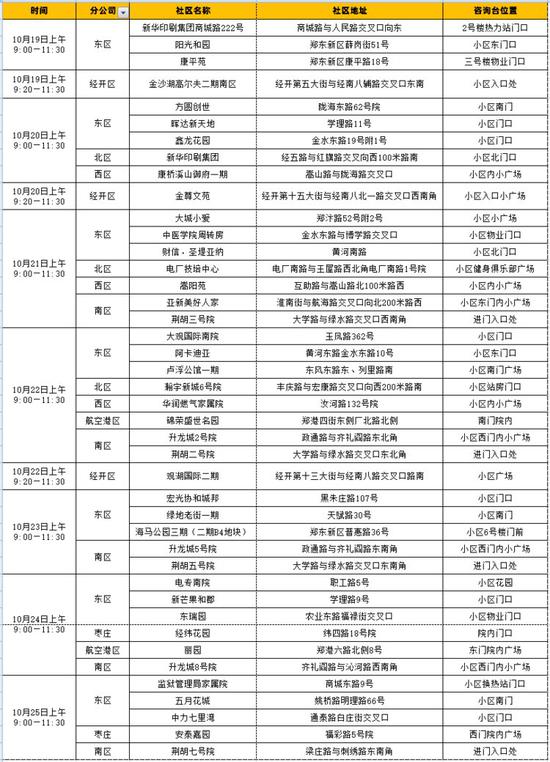 鄭州熱力集團“進社區 進萬家”供熱宣傳服務活動安排(10月19日——10月25日):