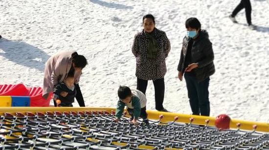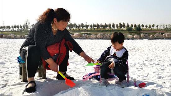 大沙河公園的銀色沙灘成了小孩子的樂園