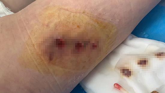 小夢5月19日被轉(zhuǎn)至鄭州人民醫(yī)院整形外科治療,“住院期間一共割了十個口,9月上旬出院,直到現(xiàn)在都未痊愈,一走路左大腿就疼,有時候還會流出黃色透明的液體?!毙粽f。