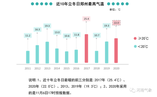 以鄭州為例:近十年立冬日第二暖