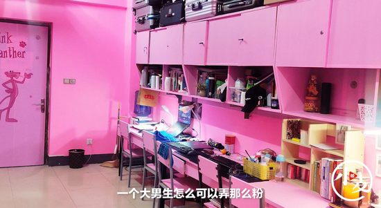 近日,河南鄭州,鄭州高校一男寢因粉粉嫩嫩的粉紅頑皮豹主題宿舍爆火,宿舍住著六個精致男生,自從宿舍爆火,好多人來參觀,彭同學稱雖然宿舍里都是猛男,但每個人都有一顆少女心!也特別勤儉持家從網(wǎng)上搶來了粉紅豹來裝扮宿舍。