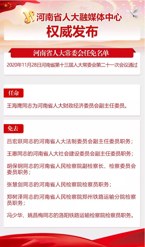 原標題:《河南省第十三屆人大常委會通過一批任免名單》