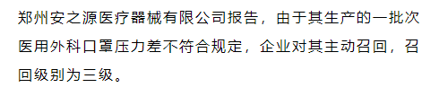 2。鄭州安之源醫(yī)療器械有限公司對(duì)醫(yī)用外科口罩主動(dòng)召回