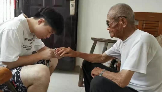 王先生稱,孝順老人在他們這個大家庭中是家風,孝順老人的事兒也經常會出現在這個大家庭里。無論是老人已經上大學的孫子,還是只有四五歲的重孫。只要孩子們回到家,就會幫老人剪指甲、洗腳等等。