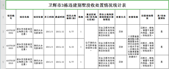 附:衛輝市3棟違建別墅沒收情況統計表