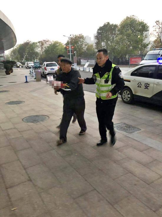 據商丘市公安局交警支隊高速大隊十一中隊中隊長李春介紹,當日下午5時許,他帶領中隊人員張凱、張磊等在連霍高速商丘睢陽站開展歲末年初平安守護專項行動,一輛面包車匆匆忙忙從高速上下來停在執勤點,“民警同志,能不能幫幫忙,我父親手腕血管割斷了,需要以最快的速度送到市立醫院急診治療”司機急切地說。民警看到,車上一位60多歲的傷者表情相當痛苦,左手緊緊捂著右手腕處,包腕的紗布處,血液仍在不斷外滲,手上沾滿鮮血,顯得十分焦急。