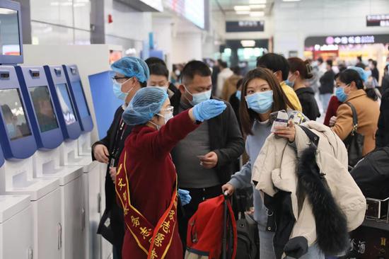 在鄭州機場T2航站樓出發大廳,旅客自覺拉開1米以上社交距離。鄭州機場工作人員程碩:“今年春運期間,鄭州機場計劃增加航班總量將達1000余架次,平均每天增加客運航班20余架次,加班航點主要集中在上海、廣州、深圳、??凇⒑贾?、廈門、福州等城市方向?!?/p>