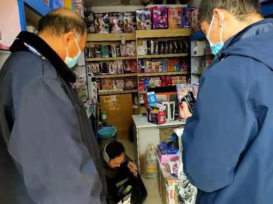 針對摸排中掌握的情況,1月26日,兩部門組織執(zhí)法人員進行了突擊查處。為將不法分子一網(wǎng)打盡,26日上午9點,二七區(qū)市場監(jiān)督管理局和公安局的執(zhí)法人員統(tǒng)一行動,直撲涉案地點。29名執(zhí)法人員兵分5路,對5家涉案門店進行了封堵檢查。