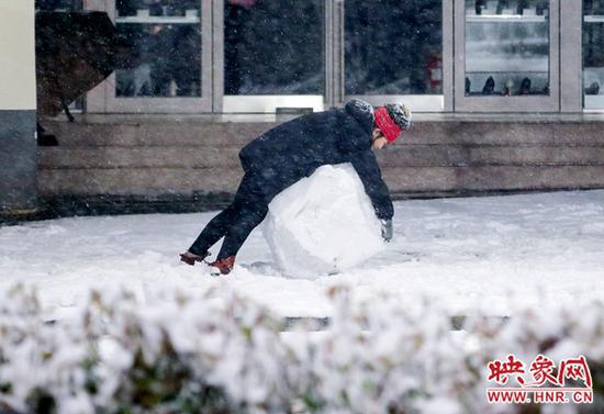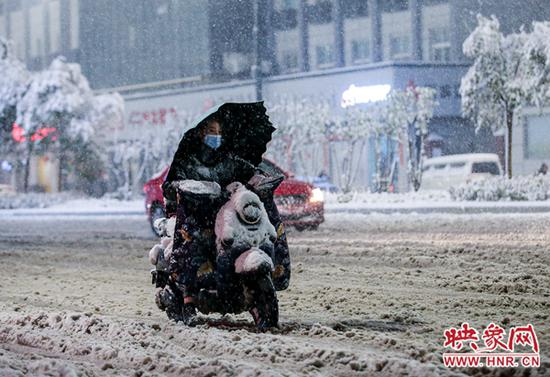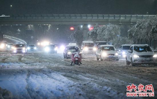 映象網記者迎著風雪,第一時間走上鄭州街頭,看牛年初雪滋潤商都,觀那人、那城、那雪。