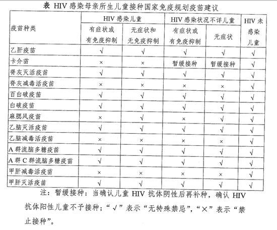 對(duì)不同HIV感染狀況兒童接種國(guó)家免疫規(guī)劃疫苗的建議見(jiàn)附表。