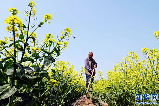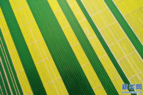 4月12日,在河南省沁陽市柏香鎮的千畝蔬菜制種田里,金黃色的油菜花迎春盛開,阡陌之間,美景如畫。據悉,蔬菜制種業是柏香鎮的一項特色產業,每年可為當地農民增加收入550余萬元。新華網發 (楊帆 攝)