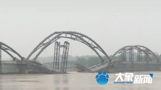 該工程為鋼結構橋梁,因上部鋼結構尚未完工,無法起到張拉作用,第四跨系梁僅依靠滿堂架支撐,水量過大導致滿堂架沖毀系梁坍塌,該險情未造成人員傷亡。