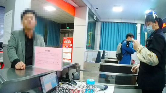 隨后,該男子離開便利店進入商丘火車站。在進站口實名制驗證處,該男子與工作人員發生口角,并無視實名制驗證規定,擅自闖入驗證通道。執勤民警司銀磊接報警后帶領輔警趕赴現場,依法查驗了該男子車票,并提醒他所乘坐列車已經發車,讓他盡快到售票窗口辦理車票改簽手續。