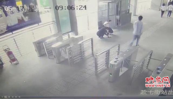 “我當時聽到聲音后,就急忙出去,看到一位孕婦在閘機口表情很痛苦,想蹲也蹲不下來,于是趕忙從工作間搬出來一把椅子讓她坐下,這樣可能會舒服一些。”站務長肖凡說到。肖凡看著孕婦坐下來還沒有得到好轉,于是便毫不猶豫地蹲下來為這位孕婦揉腿,幫助她緩解疼痛,肖凡一邊揉一邊詢問這位孕婦有沒有好轉,