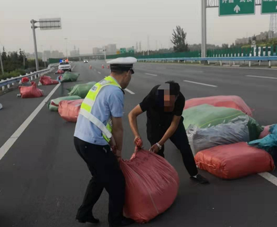 5月25日7時許,一輛滿載包裹的輕型貨車行駛到鄭州機場高速16公里東半幅時,突然失控撞向右側高速公路護欄致車輛側翻,在滑行近30多米后側翻的貨車才在第四車道內停了下來,貨車運載的包裹散落了一地,占據了兩個行車道和應急車道,情況十分危險。