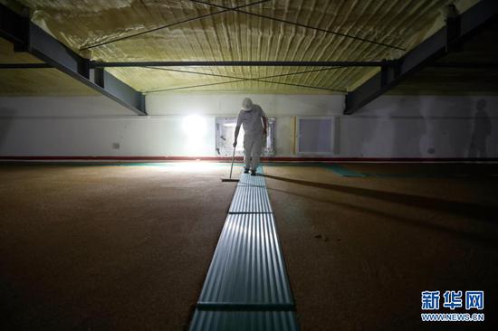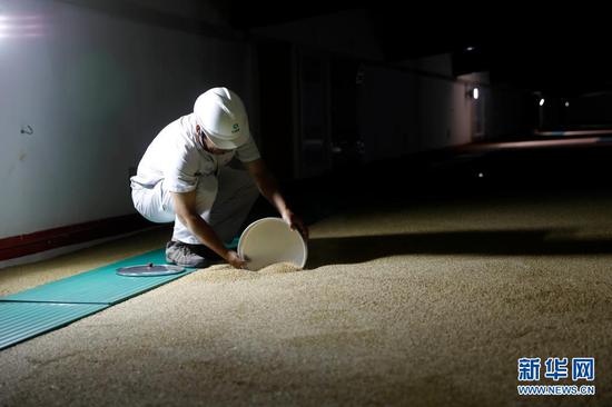 6月19日,中儲糧新港直屬庫工作人員在糧庫中作業。