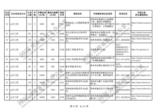 河南省2021年普通高等學(xué)校專科畢業(yè)生升入本科階段學(xué)習(xí)招生計劃