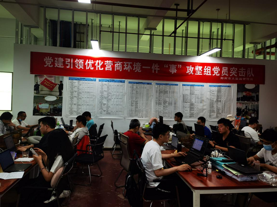 這里的辦公環境遠沒有互聯網“大廠”的高大上和科技范兒。在鄭州市百花路47號,一幢沒有電梯的舊辦公樓里,“攻堅小組”約200平方米的辦公區塞下了百余人,用摩肩接踵來形容這里的場景并不為過。除4名鄭州大數據局的行政人員外,“攻堅小組”其他人是來自阿里云、數字鄭州科技有限公司等公司的技術精銳。他們就在這間大辦公室創造了鄭州數字化大基建的奇跡。