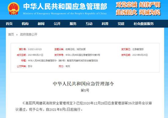 此外,《規(guī)定》還對高層建筑消防安全職責、消防安全管理、消防宣傳教育和滅火疏散預案、法律責任等進行了明確,違規(guī)動火、違規(guī)設置戶外廣告牌、未落實值班制度、未按規(guī)定建立消防組織等將受到處罰。