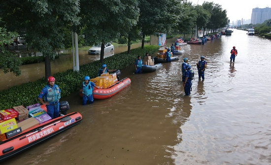 自7月20日下午抵達鄭州,江西藍天救援隊已連續8天,奔走在鄭州、新鄉、衛輝等地防汛抗災第一線,參與被困人員的轉移、救援物資的運送以及其他突發性救援事件。其中僅7月21日至23日期間,江西藍天救援隊就轉移群眾3193人,運送物資450車。