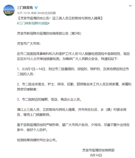 原標題:《靈寶市疫情防控公告!這三類人員立即就地與其他人隔離》