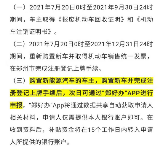為切實減輕強降雨給廣大群眾造成的損失,鄭州市將對因水災(zāi)受損報廢的鄭州本地牌照(豫A和豫V)民用汽車的車主予以購置新車補貼。該系統(tǒng)正在緊張開發(fā)中,將于2021年8月25日前,在“鄭好辦”App上線。