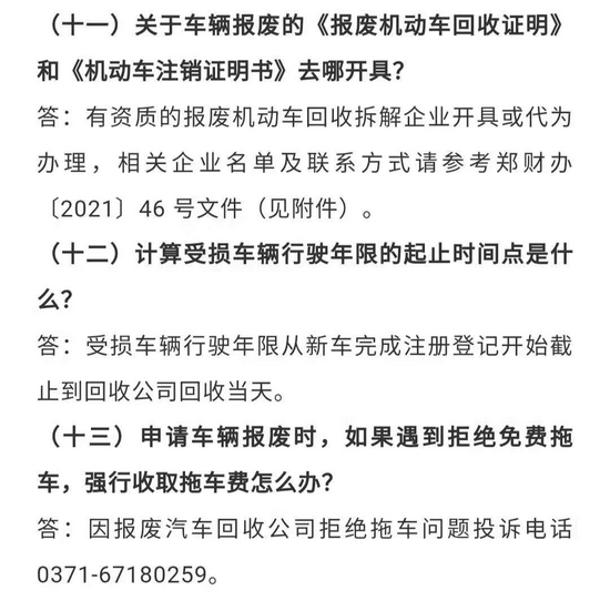 原標題:《@鄭州車主,車輛因水災(zāi)受損報廢可以領(lǐng)取補貼了》