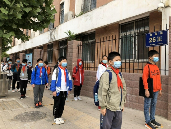 (資料圖 2020年5月鄭州市管城區港灣路小學復課時分年級、分時段進行)