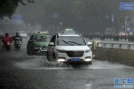 8月22日,汽車在鄭州市花園路上涉水前進(jìn)。新華社記者 李嘉南 攝