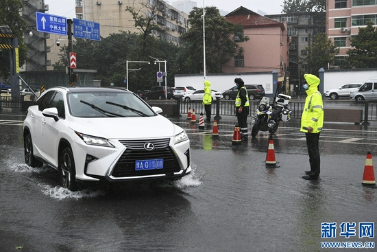 8月22日,交警在金水路下穿京廣鐵路隧道附近引導(dǎo)車輛繞行。新華社記者 張浩然 攝