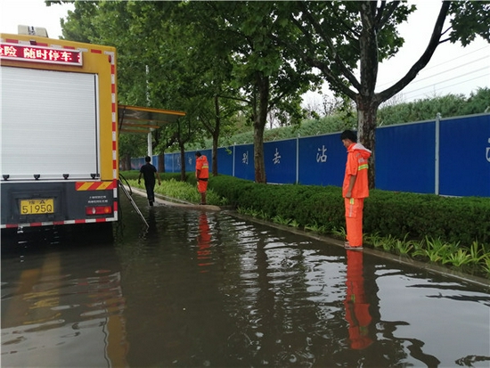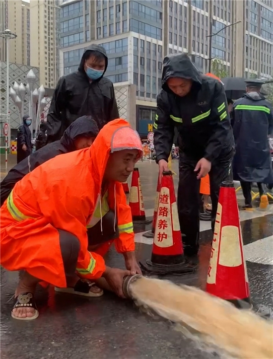 各責任單位按照指令,全體防汛人員在崗在位,路上值守,市政部門及時清理積水區(qū)域檢查井、調(diào)整防護框,移動泵車均在預定位置進行及時的抽排作業(yè)和點位守候,各責任單位和交警均按點位布置在崗在位。此輪降水共出動市政、環(huán)衛(wèi)、交警、房管、人防等防汛人員累計達45600余人,防汛檢查車輛2700臺,移動泵車51臺,封道路障47套,反光錐2550個,鐵制隔離護欄260個,救援守候鏟車200余臺、應急發(fā)電車6輛(其中一輛攜帶應急排水泵2臺),新型擋水板2700塊;市區(qū)所有泵站自動啟動抽排正常;各積水點位人員值守到位,嚴格落實24小時防汛值班制度。