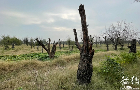現(xiàn)場(chǎng):208棵棗樹林中不低于90棵疑似枯死