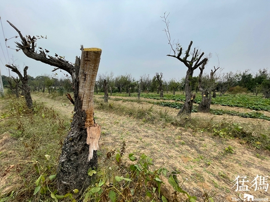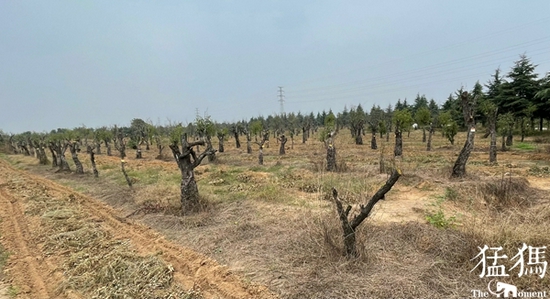 記者隨村民來到移植古棗樹的薛店鎮(zhèn)廟東陳村和小李莊北面的四塊棗樹林查看,發(fā)現(xiàn)半年前新移植的棗樹林中,確有大量古棗樹枝葉全無,樹干已無水分,疑似枯死。部分長(zhǎng)出枝椏的古棗樹,長(zhǎng)勢(shì)也很一般。一位村民表示:“今年的墑這么好他們才照看成這樣了,明年要是天不好,樹會(huì)死更多。”