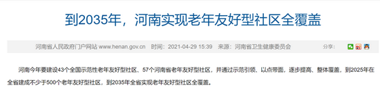 依據河南此前消息,我省今年要建設43個全國示范性老年友好型社區、57個河南省老年友好型社區,并通過示范引領、以點帶面,逐步提高、整體覆蓋,到2025年在全省建成不少于500個老年友好型社區,到2035年全省實現老年友好型社區全覆蓋。