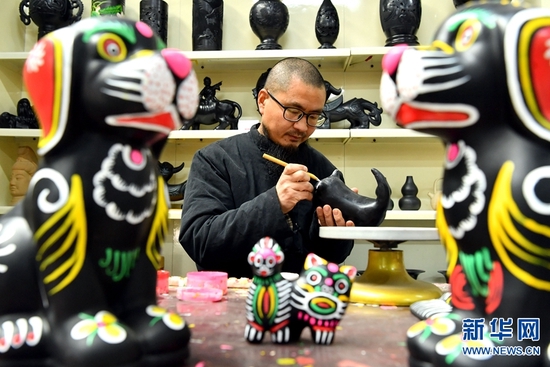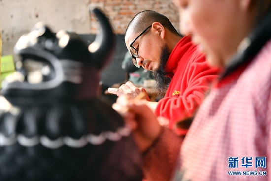 3月1日,河南省周口市淮陽區,泥泥狗傳承人邵波在創作泥泥狗作品。在當地的引導和扶持下,泥泥狗這項傳統技藝煥發出新的活力。新華網發(苗育才 攝)