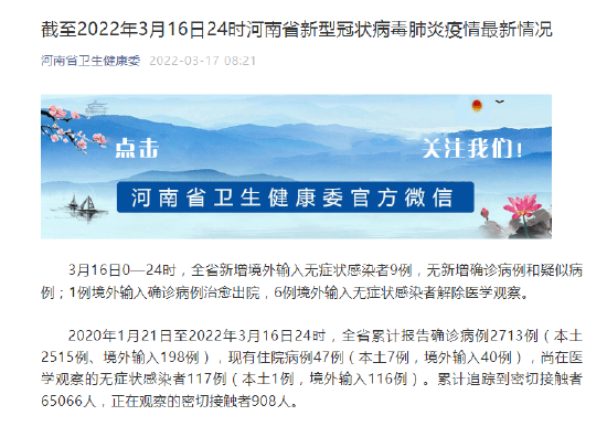 原標題:《截至2022年3月16日24時河南省新型冠狀病毒肺炎疫情最新情況》