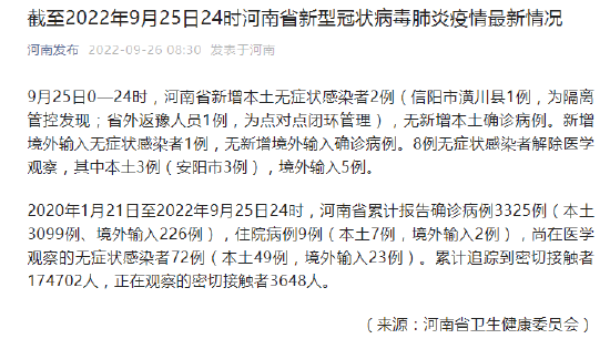原標(biāo)題:《截至2022年9月25日24時(shí)河南省新型冠狀病毒肺炎疫情最新情況》
